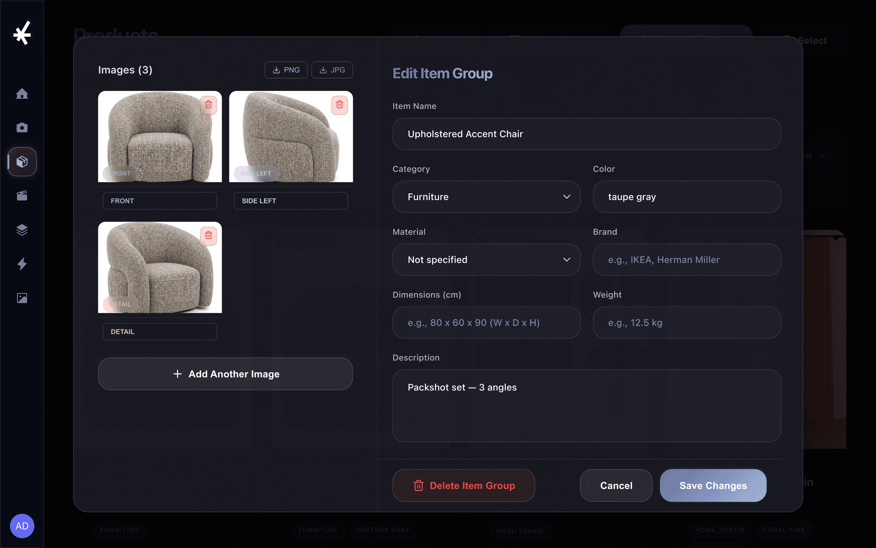 Combineer producten virtueel in één beeld, zonder fysiek te schuiven, stylen of testen. Ideaal voor bundels, collecties, cadeauverpakkingen en cross-sell visuals die er direct professioneel uitzien.