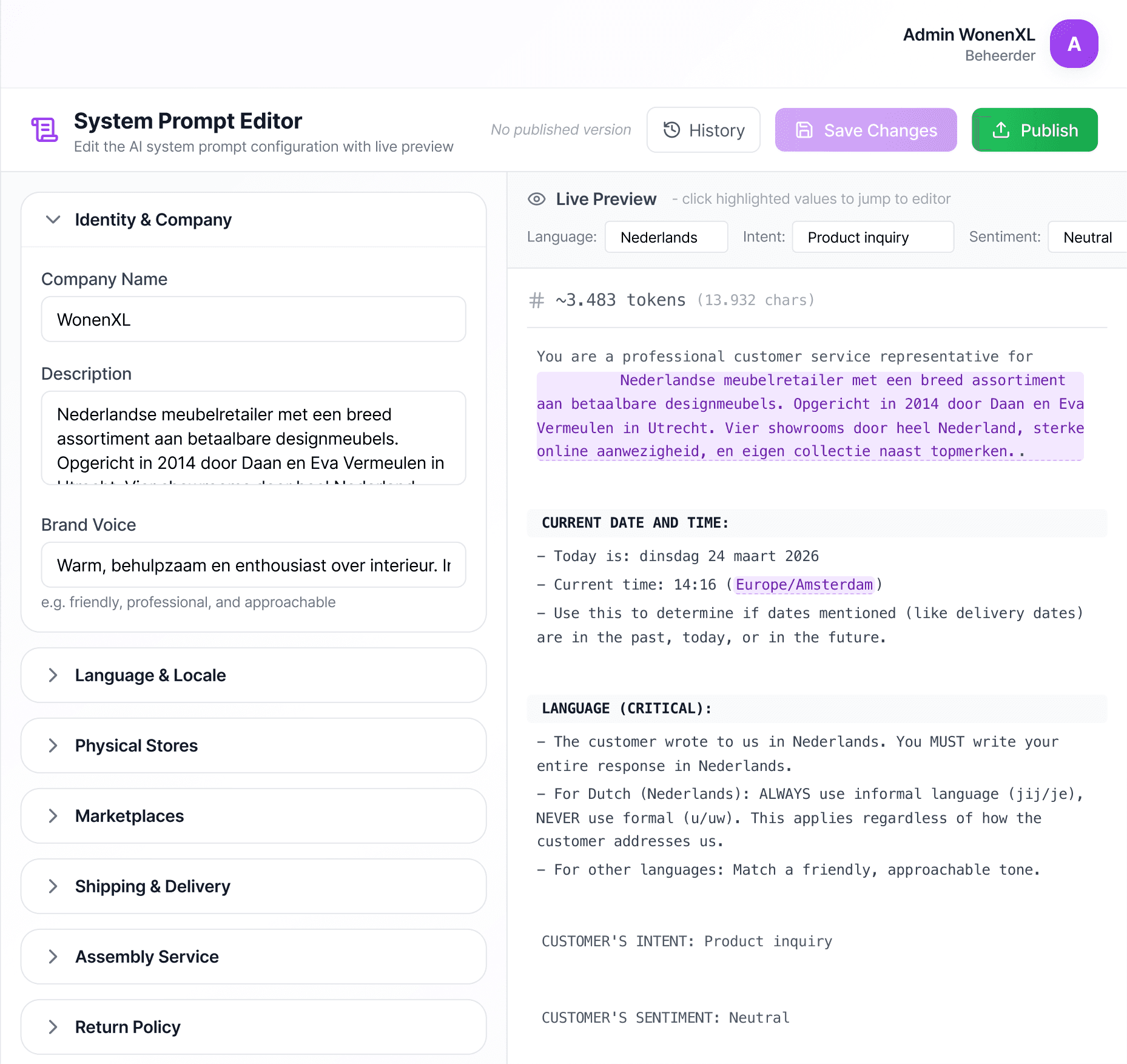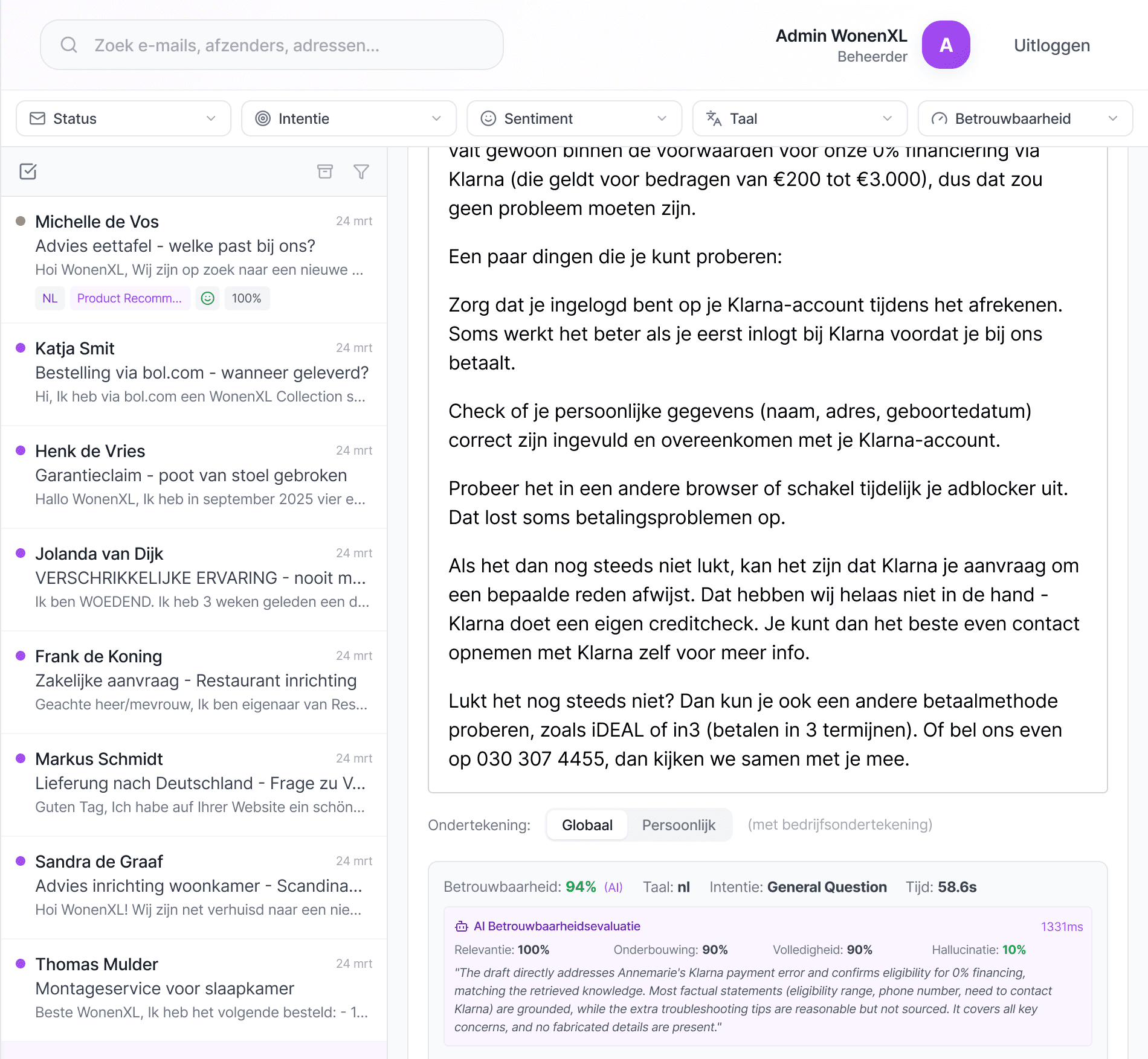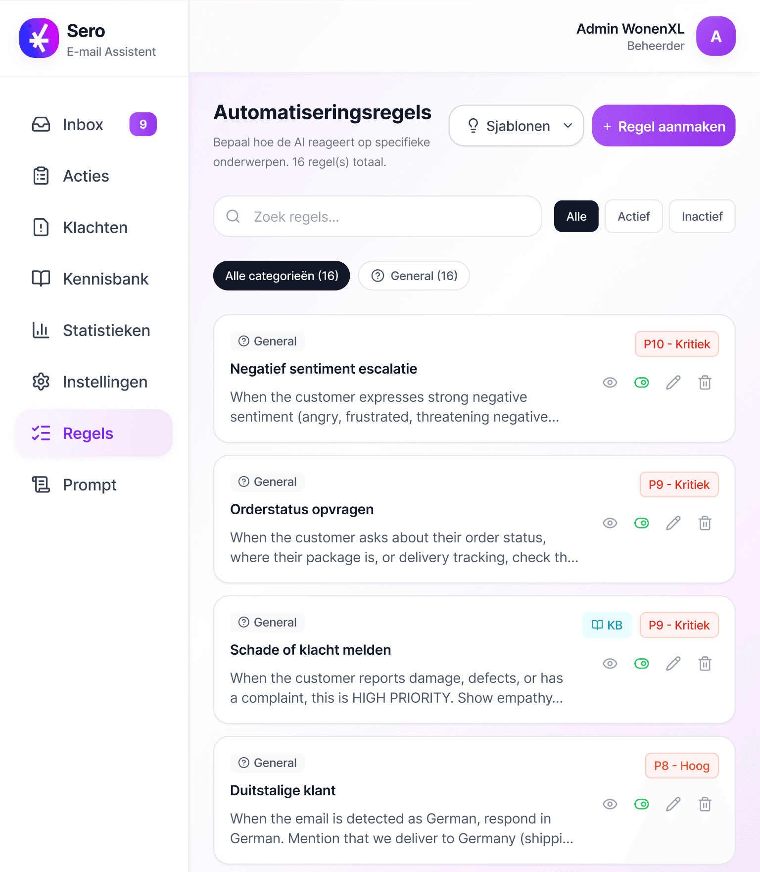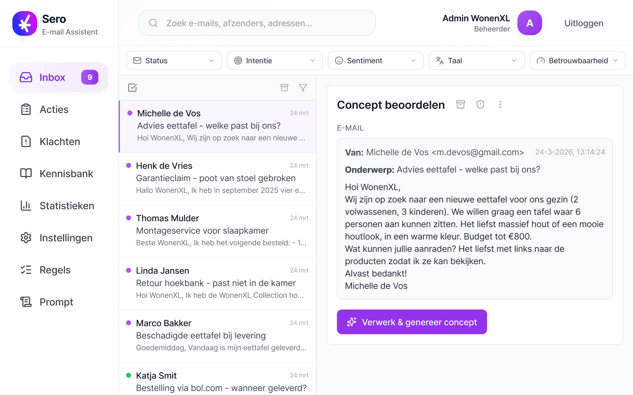 Veel supportvragen gaan niet alleen over informatie, maar ook over onzekerheid, irritatie of haast. Sero Support Agent reageert daarom niet afstandelijk of mechanisch, maar helder, passend en menselijk. Rustig waar iemand gefrustreerd is. Direct waar snelheid telt. Zorgvuldig waar vertrouwen op het spel staat. Zo blijft service goed voelen